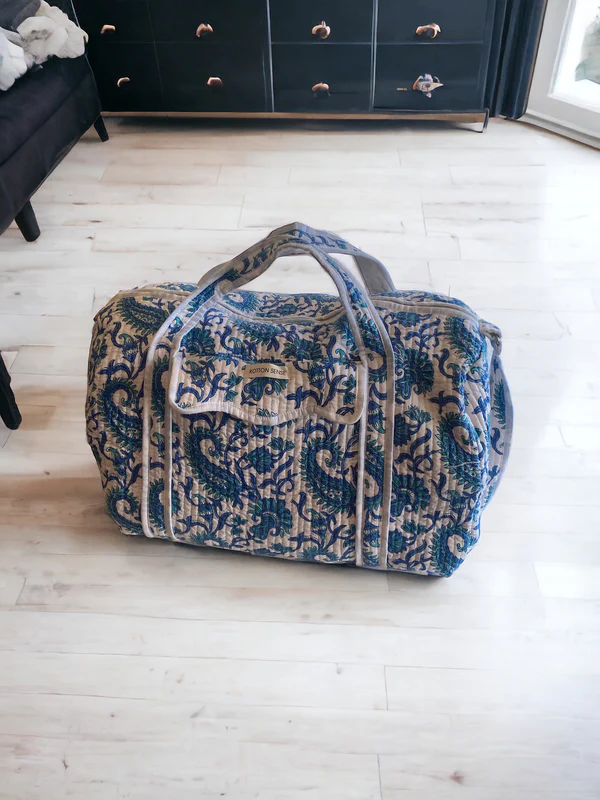 Introducing our Weekender Duffel Bag – crafted from 100% cotton, sustainable, and eco-friendly hand block printed fabric. This versatile bag seamlessly transitions from your gym companion to the perfect day at the beach, a weekend getaway, or your everyday yoga and sports activities bag. The timeless patterns and vibrant colors, achieved through intricate hand block printing, bring a stylish flair to your outings. Just like our other products, this piece aligns with your eco-conscious lifestyle, offering both fashion and sustainability. Elevate your travel and sporty style with our Weekender Duffel Bag – where practicality meets sustainability.