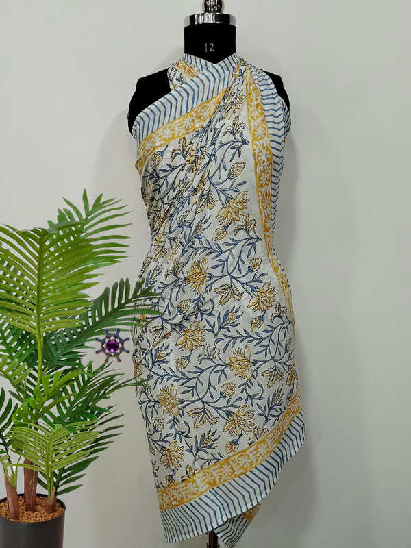 Our hand Block Printed Scarf/sarong – a 100% cotton, sustainable, and eco-friendly accessory that effortlessly transitions from a stylish scarf to a chic sarong. Perfect for summer, beach days, or casual outings, its unique hand block printing adds timeless patterns and vibrant colors.