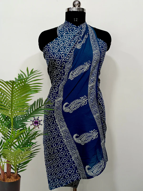 Our hand Block Printed Scarf/sarong – a 100% cotton, sustainable, and eco-friendly accessory that effortlessly transitions from a stylish scarf to a chic sarong. Perfect for summer, beach days, or casual outings, its unique hand block printing adds timeless patterns and vibrant colors.