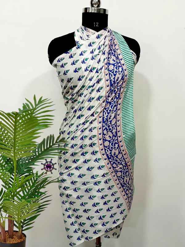 Our hand Block Printed Scarf/sarong – a 100% cotton, sustainable, and eco-friendly accessory that effortlessly transitions from a stylish scarf to a chic sarong. Perfect for summer, beach days, or casual outings, its unique hand block printing adds timeless patterns and vibrant colors. This versatile piece complements your eco-conscious lifestyle and brings a touch of elegance to any occasion. Easy to care for, our washable scarf combines fashion, comfort, and sustainability, making it a must-have for your conscious wardrobe. Elevate your style with our Hand Block Printed Scarf – where fashion meets sustainability.
