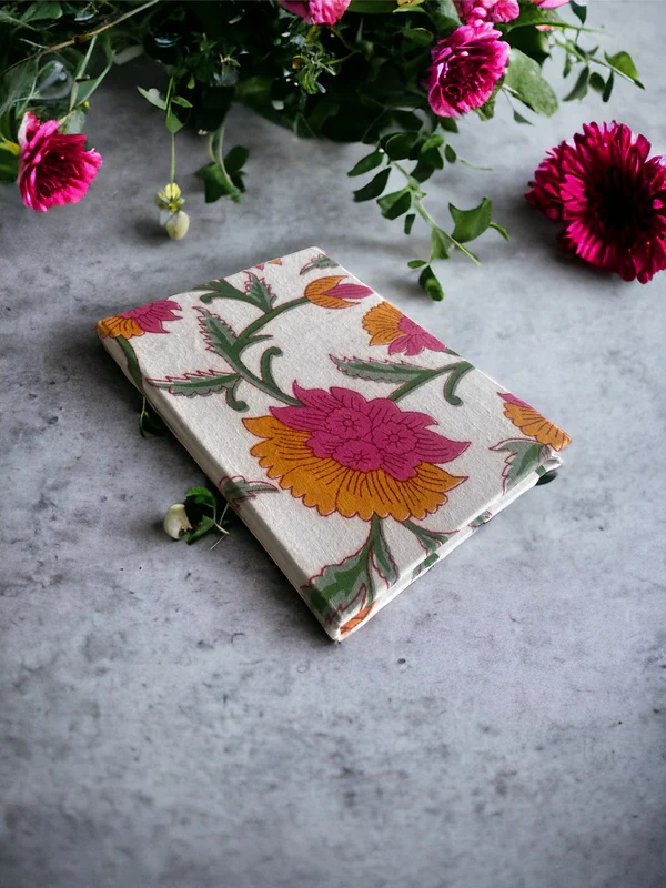 Our eco-friendly Small Recycled Paper Notebook, crafted with care for your daily notes and sketches. Featuring recycled paper pages for reduced environmental impact and a smooth writing surface. With a beautiful block print fabric cover made using vegetable dyes, each notebook showcases vibrant colors and reflects our commitment to eco-friendly materials.